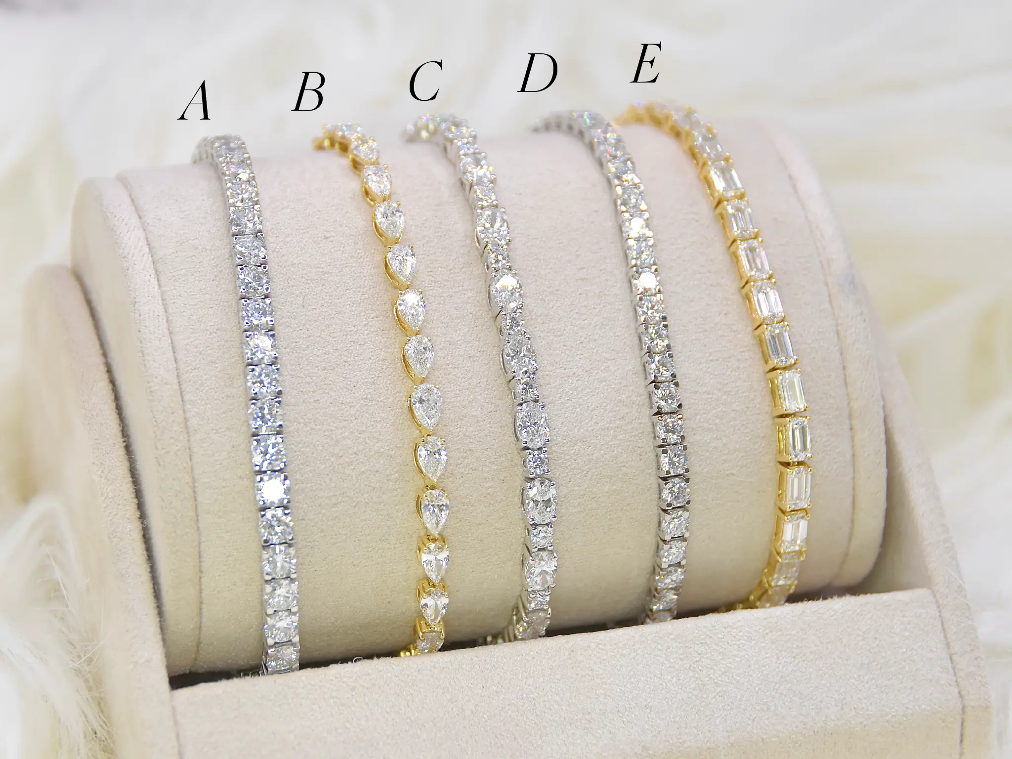 Each bracelet is a testament to elegance, featuring a continuous line of meticulously set diamonds that beautifully encircle the wrist. However, please note that they are now available in lab-grown and natural diamonds. Whether you prefer the classic simplicity of a single-row diamond bracelet or a more contemporary design, our collection offers a variety of styles to suit every taste. Elevate your style with the perfect tennis bracelet, designed to shine with every movement.