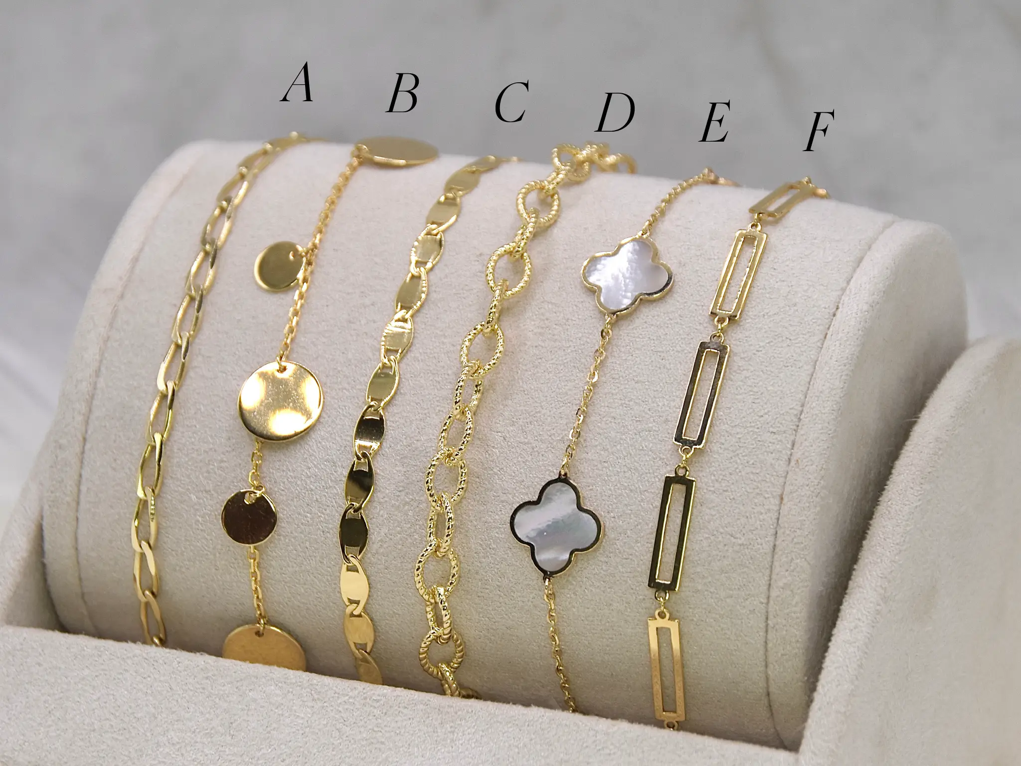 Discover our exquisite collection of gold bracelets, perfect for adding a touch of elegance to any outfit.