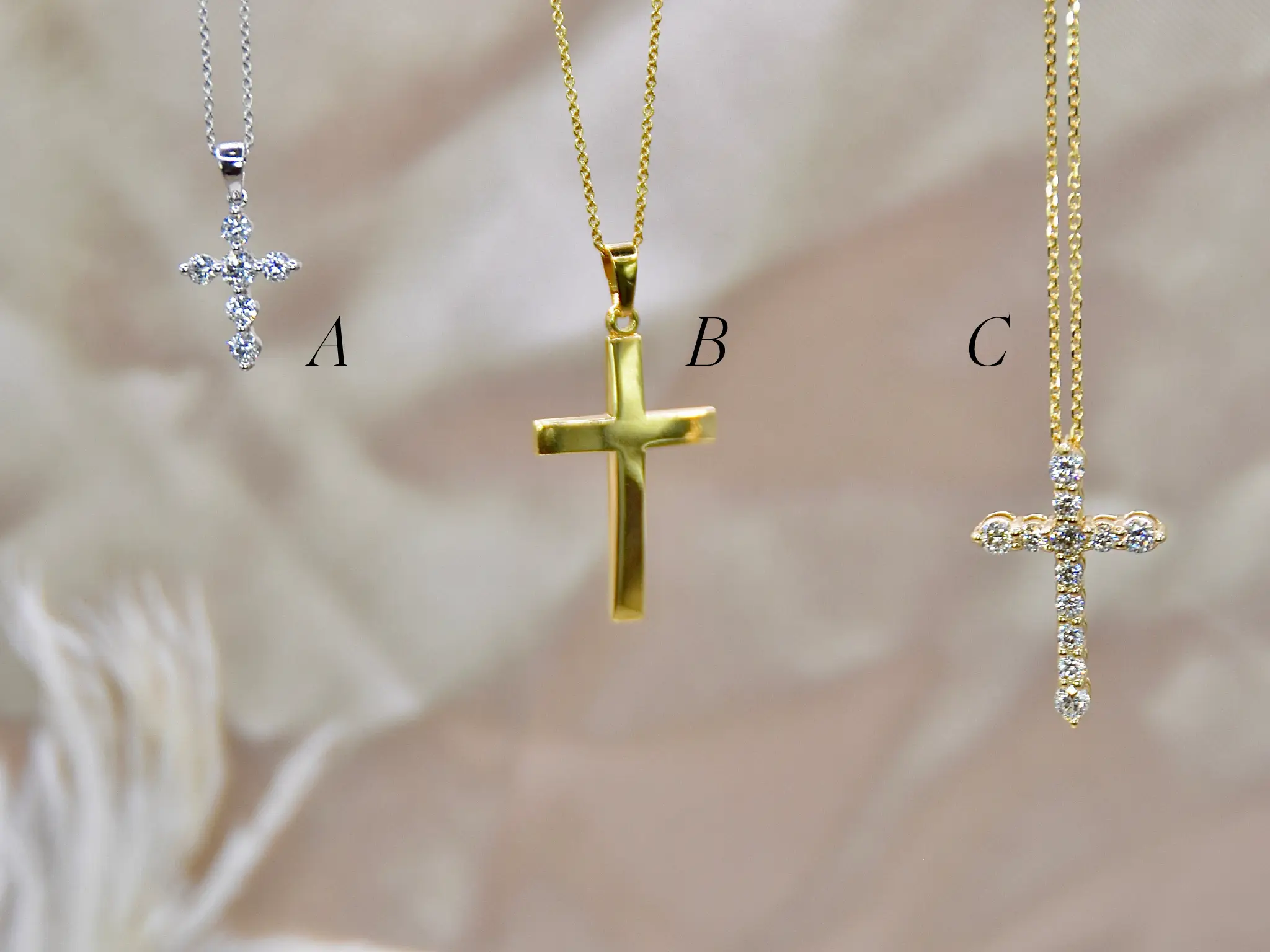 Discover our exquisite collection of crosses, available in any color—white, yellow, or rose—and crafted in 14 or 18 carat.