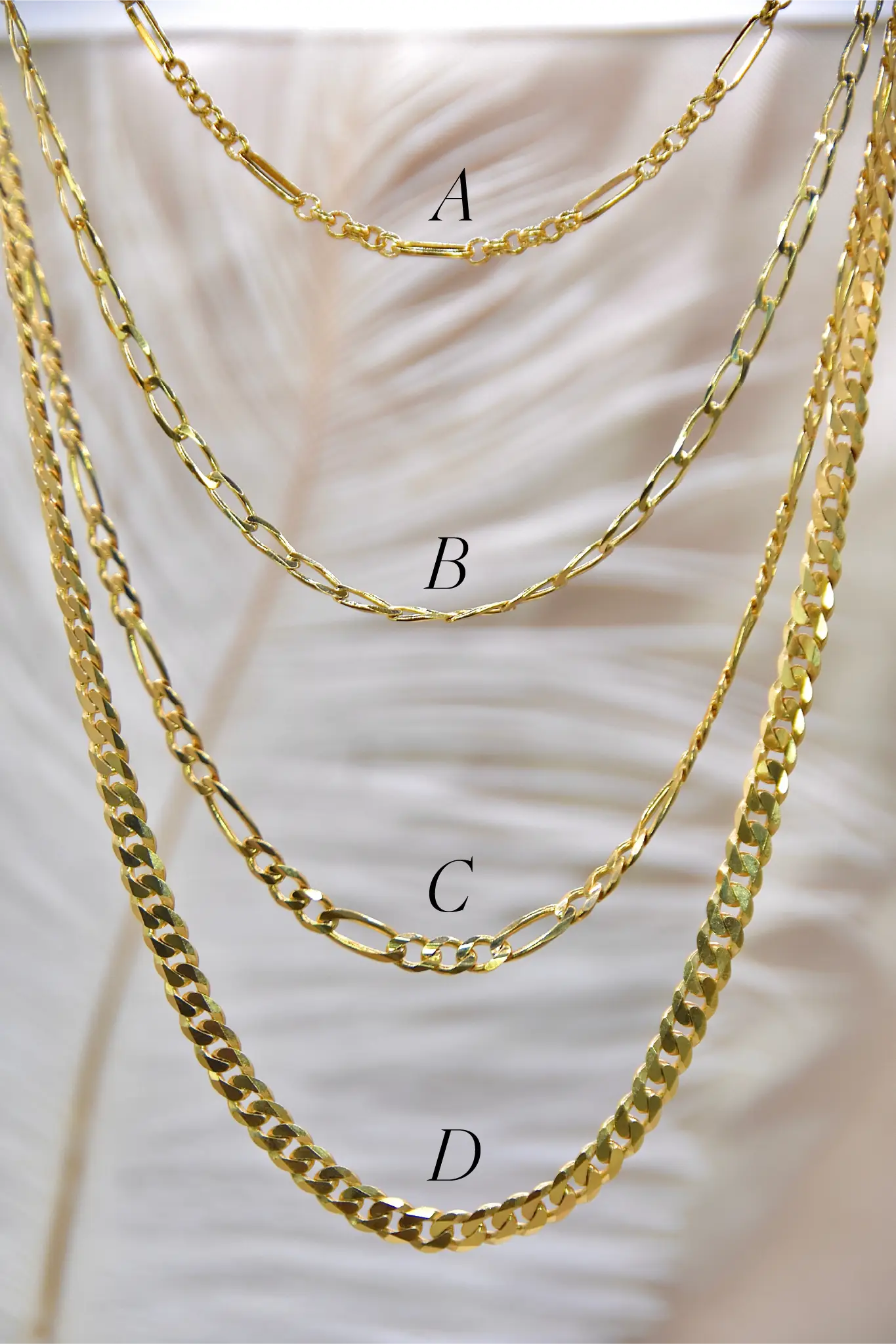 Available in a range of widths, lengths, colors, and carats, these versatile pieces are perfect for any occasion. Whether you prefer a classic yellow, sleek white, a bold rose gold option, or the timeless appeal of sterling silver or platinum, our chains offer the perfect blend of elegance and individuality. With options in various carat weights, you can find the perfect chain to express your unique personality. From wheat chains to hang a pendant on, to a bold curb chain to layer with others, we truly have it all. Embrace the freedom of choice with our diverse selection!